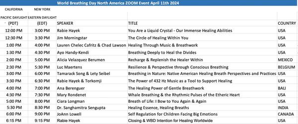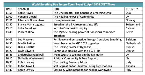 This year we have organized two "marathon" six hour events on the Zoom platform to celebrate World Breathing Day to hear prominent and experienced breathwork practitioners share about the meaning of this year's theme "Time for Healing".